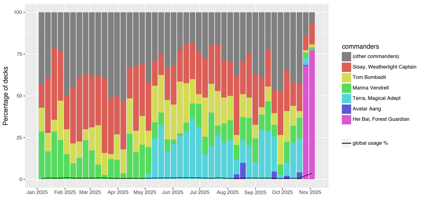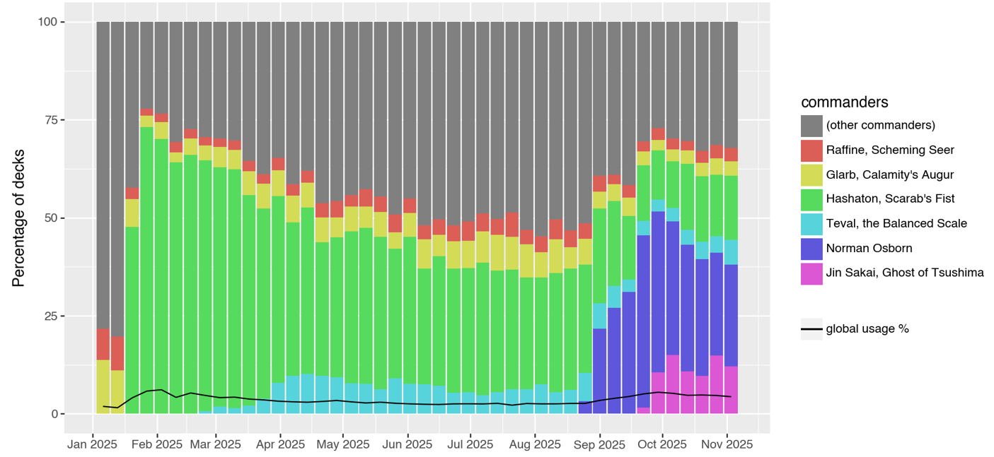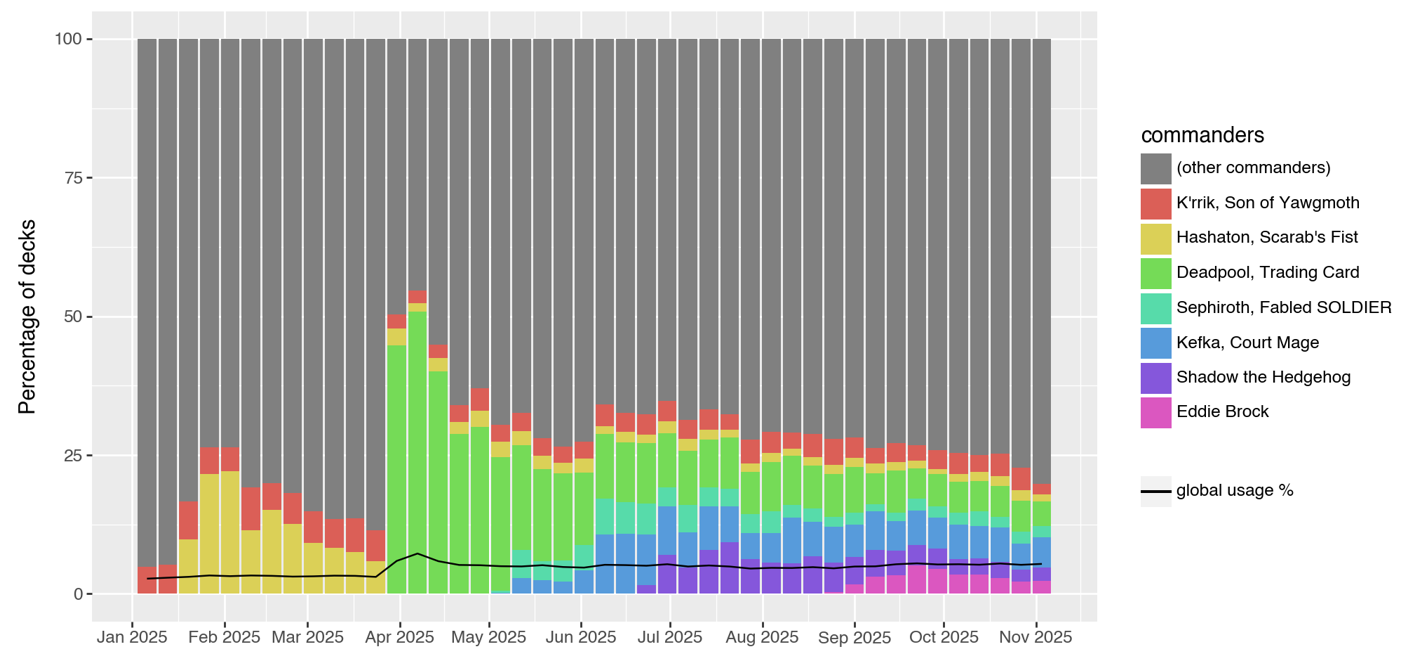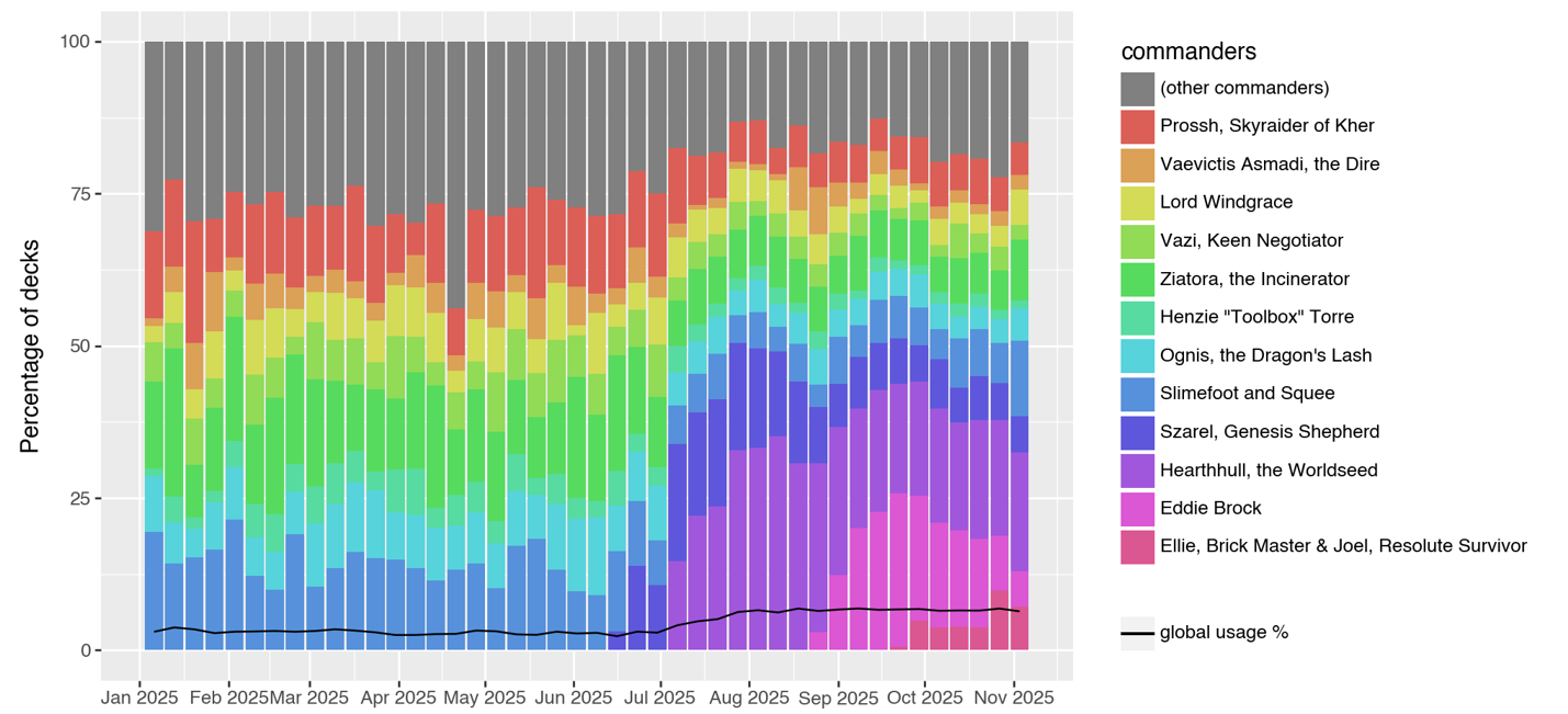 To somewhat stifle this bias, I focused on each and every commander which was brewed in 2025, no matter when it was initially revealed. While the most recent legendary creatures will logically have the upper hand due to the novelty effect, this will nonetheless allow us to see which of the celebrities of the past managed to stay on board.