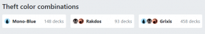 Due to that, I made the decision to use his personal Theft page. I try and avoid using commanders' personal pages when I can since it feels a bit like cheating, but I think it's important to point out when using the Theme Pages, themselves, aren't feasible. A nice benefit from using Brion's page directly is that it will increase the number of cards that synergize with Brion himself as opposed to just cards that simply assist in pushing the theme.