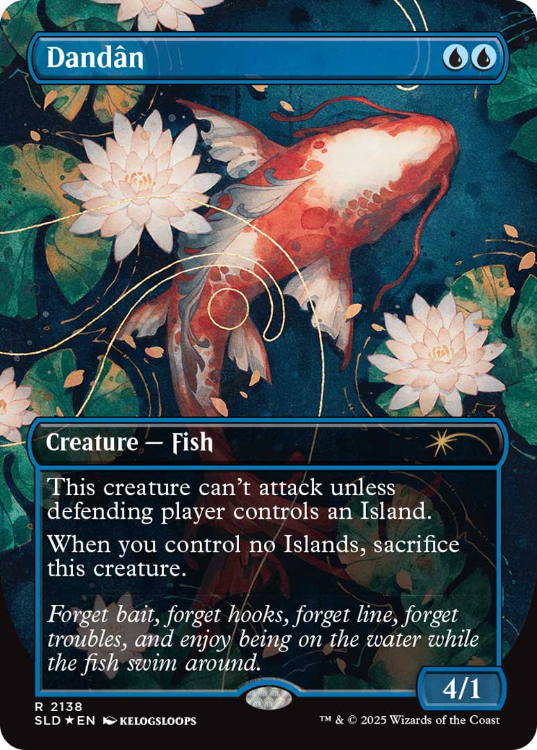 There's one more drop to mention from the panel, and it's dedicated to the popular format Dandan, aka Forgetful Fish. The drop includes reprints of several cards that are crucial to the format, and have various border treatments.