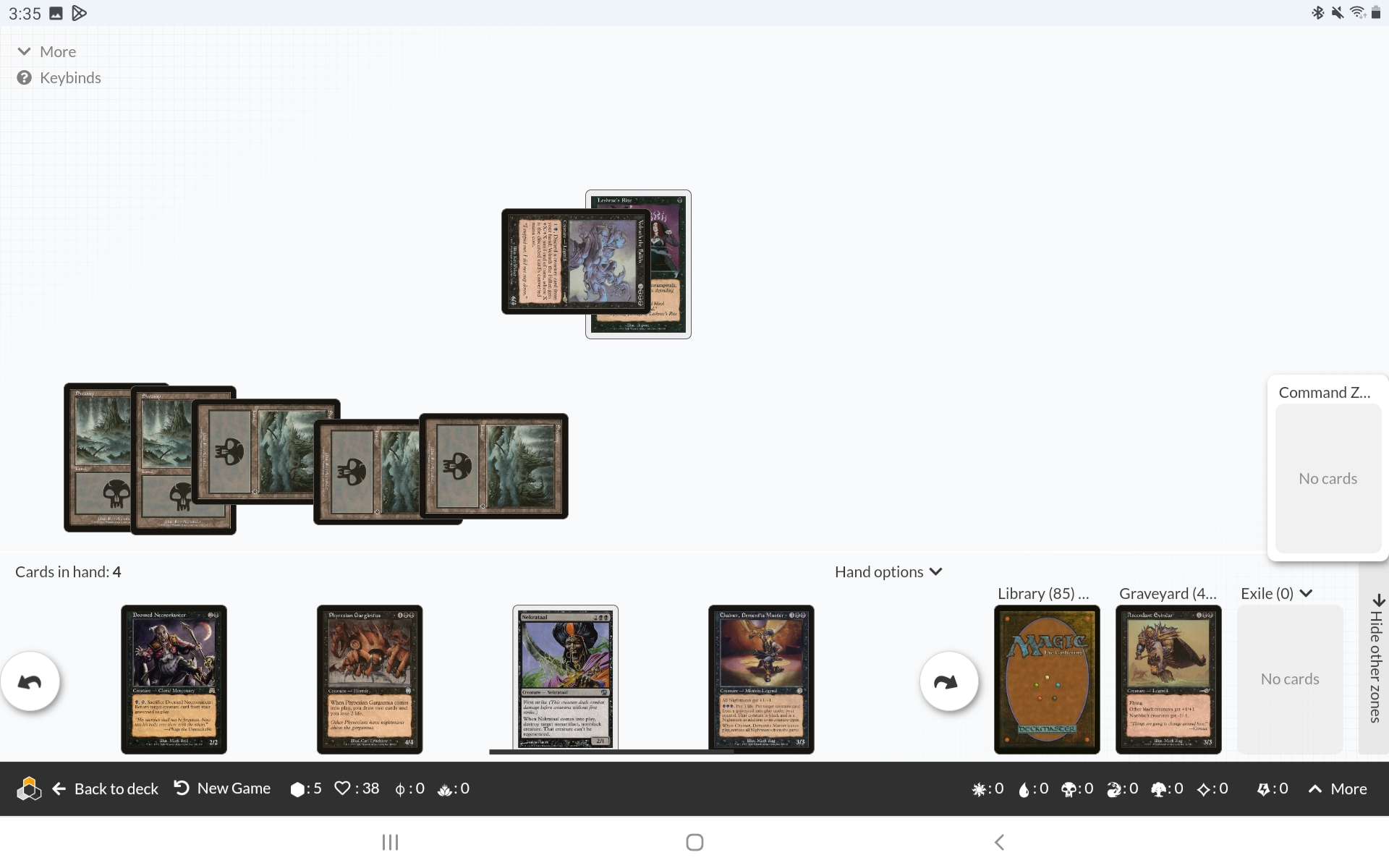 By the time I got to this point with Volrath, the 99 was full, with good ratios of card types and a sensible mana curve. More importantly, by this point the deck had some of the identity I originally set out for. This proved to be a great point to take a goldfishing detour into Archidekt's Playtester.