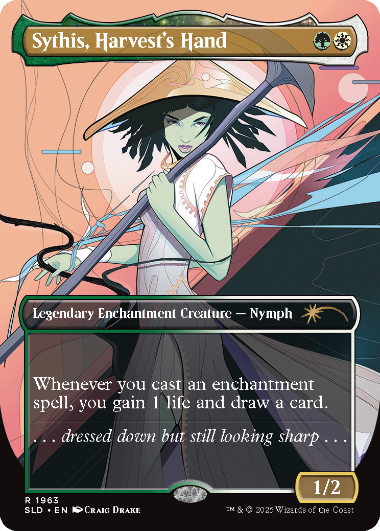 Sythis, Harvest's Hand, a card from the Slay the Day Secret Lair drop. Image credit: Wizards of the Coast