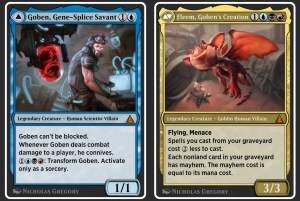 There's a lot of flexibility with this commander, since you can cast him early for the front side, then transform him later in the game. Or spend that four mana and get him down for his back half first. As we look over this deck list, the cards will be a bit more focused on the Green Goblin side, playing off of discarding cards and then casting them from the graveyard.