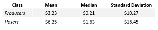 Finally, we can compare our Treasure-'hosers' versus Treasure-producers. Compared to Treasure-producers, Treasure-'hosers' do edge out a bit in terms of price, but not much.