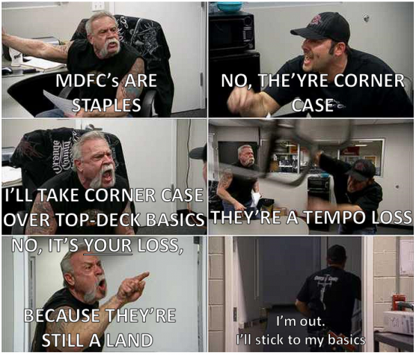 Even a year later, I still find MDFCs to be almost camp-like, with some being staunch opponents, citing their tempo loss, and others swearing by their flexibility. Opponents cite their corner-case nature, while proponents cite exactly that corner-case potential that makes them worth including.