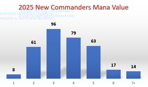 Notably, 2024 pulled back just a bit on the sheer volume of new commanders, but at 338 revealed so far, 2025 is set to be another banner year at these huge volume levels we've been living in.