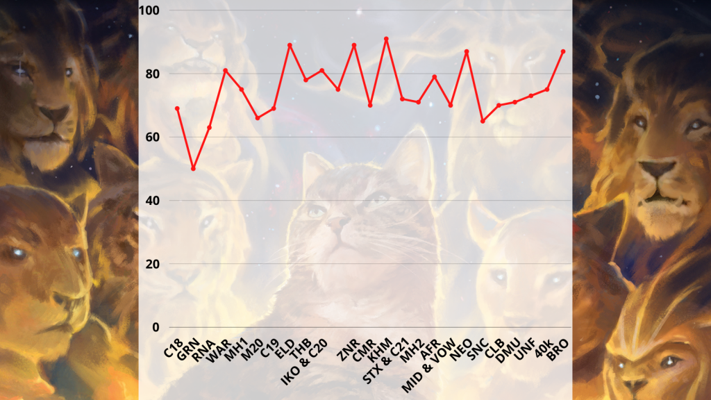 Hey, not bad! That's a 12% jump from our last set and my best since an 87% effort with Kamigawa: Neon Dynasty. Perhaps BRO wasn't the most popular set overall, but I'll remember it as a personal success. Here's hoping for more in the new year!