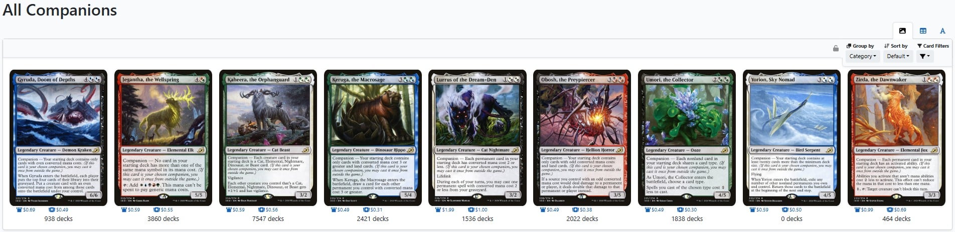 The other eight companion cards have companion restrictions that are achievable within the deckbuilding rules of commander, and each of them presents an interesting challenge to crafting a deck.