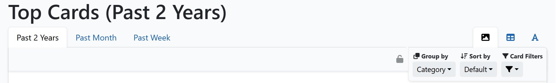 View the top cards of the Past 2 Years, Past Month or Past Week